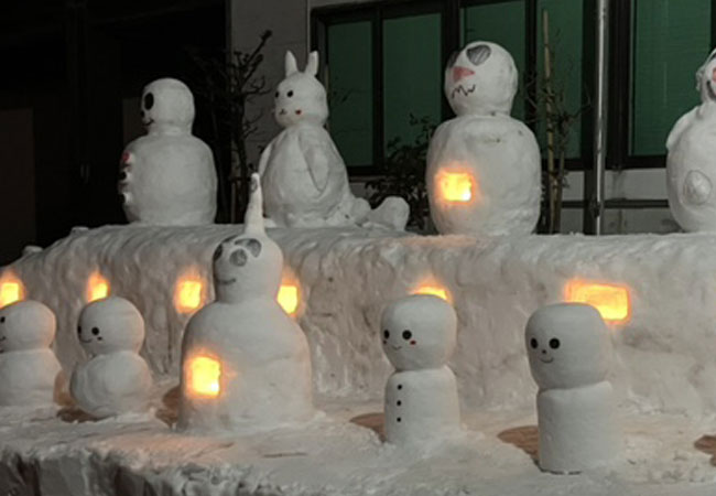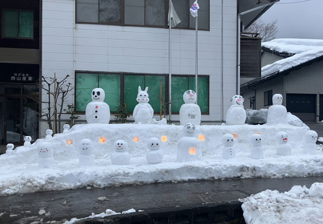 2月6日。今年も本社がある白山市白峰では「雪だるままつり」が開催されました。 住民の方々が家の軒下に大小さまざまな雪だるまや雪像を作り、夕方からはライトアップ。白峰全体が幻想的な雰囲気に包まれました。 本社スタッフも会社の入り口にたくさんの雪だるまを作り、皆様をお出迎えしました。