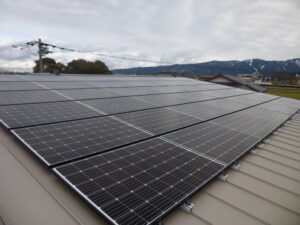 お客様の太陽光発電システムは、11.93kW、南面、屋根勾配1.5寸、長州産業(CS-284B62)×42枚の余剰接続です。