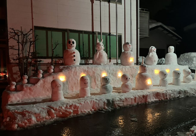 2月6日。今年も本社がある白山市白峰では「雪だるままつり」が開催されました。 住民の方々が家の軒下に大小さまざまな雪だるまや雪像を作り、夕方からはライトアップ。白峰全体が幻想的な雰囲気に包まれました。 本社スタッフも会社の入り口にたくさんの雪だるまを作り、皆様をお出迎えしました。